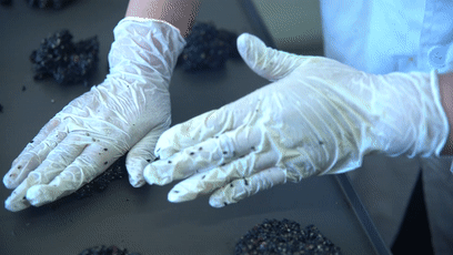 黑芝麻经过炒制后温厚焦香,这股芝麻香扑鼻而来,黝黑油光的黑芝麻中,经过鸡蛋与蜂蜜的混合,被紧密压制在一起。