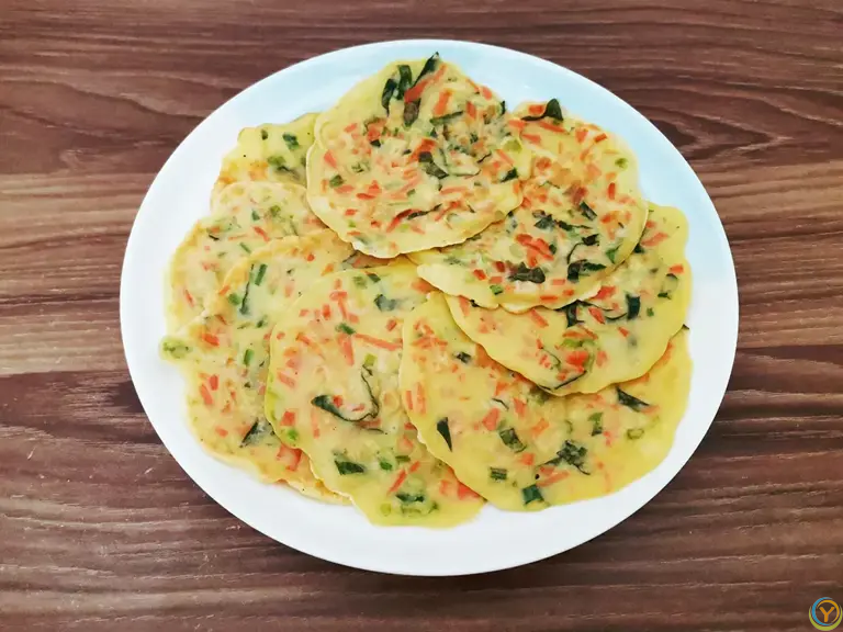 2、放到碗里,另外切点胡萝卜碎,鸡蛋放一个,先扒拉散,再补充50克白开水,继续加面大约100克,调成老酸奶一样的粘稠度,别忘了加一点盐,有点咸味更好吃。
