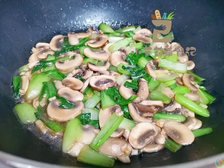 4、炒菌类的时候,要多备些蒜,能让香味翻倍。届时把锅烧热烧干,倒些油,一半的蒜进去,扒拉两下就把口蘑倒里边,铲子一直翻动,这样可以快速炒透,鲜味释放出来。