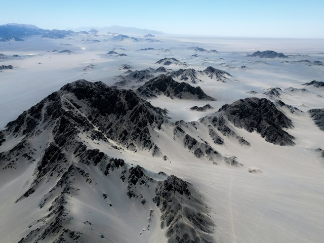 黑独山位于青海省海西蒙古族藏族自治州茫崖市,是一块很小众的目的地。这座山体通体漆黑,山势孤傲挺拔,与周围环境形成强烈对比。风沙常年侵蚀山体,形成了细腻的纹理和锋利的山脊,呈现出一种近乎外星的地貌特征。