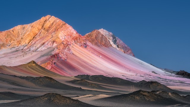 旅行建议:由于地处偏远,建议自驾或包车前往。导航可设定“茫崖市冷湖镇”,黑独山就在冷湖石油基地的遗址对面。周边还有被称为“彩虹山”或“胭脂山”的地貌,粉白色的碎石远远看去整座山都呈现出粉红色,与黑独山形成鲜明对比。