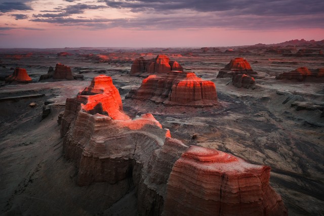 游玩攻略:黑独山免费入场,建议观光时间2-3小时。这里尚未开发为正式景区,不能开车进入,需要步行游览。最佳拍摄时间是日落时分,整个区域被染成金黄和红色,更显苍凉壮美。