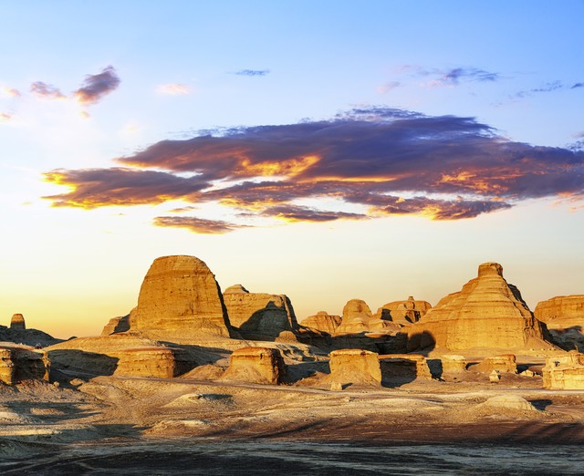 乌尔禾魔鬼城位于新疆克拉玛依市乌尔禾区,是中国最大的雅丹地貌群,被《中国国家地理》评为“中国最美三大雅丹”之一。这里是由风沙侵蚀形成的奇特地貌,各种形状的土丘和岩石在风中发出怪声,似鬼哭狼嚎,故得名“魔鬼城”。