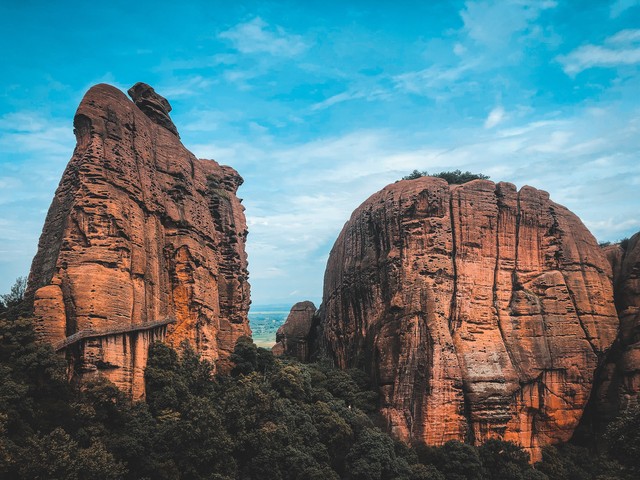 核心观景台:七彩云海台可360°全景俯瞰丹霞群峰,晨雾缭绕时如仙境。七彩仙缘台是色彩层次最丰富的区域,红、黄、白岩层交织,适合逆光拍摄剪影。虹霞台在黄昏时分会被染成金色,搭配晚霞形成“火烧丹霞”奇观。