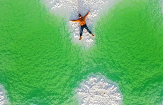 最佳拍摄点:2号站湖水颜色丰富,有蓝、绿、黄,还能拍到远处的雪山。4号站是最出片的站点,人相对较少,不管拍风景还是人像都绝美。5号站湖中心盐带上有一架钢琴,拍照超有氛围感。下午4点-7点是黄金时间,阳光柔和,湖面波光粼粼,拍照超好看。