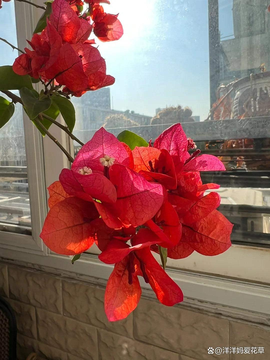 防止徒长:要是阳光不够,三角梅就容易“徒长”——枝子长得又细又长,叶子也多,但就是不开花。多晒太阳就能避免这种情况,让枝条长得壮,开花也多。
