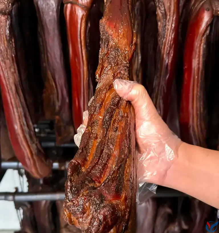 云南的腊肉,充满了神秘和原始的魅力。它的风味密码,在于“自然”和“传统”。多由当地少数民族按照古法制作,常加入山里特有的香料和草药。风干过程完全借助高原强烈的紫外线和干燥的空气,风味纯净而独特。以著名的“琵琶肉”为例,整猪腌制风干,肉质紧实,风味极其醇厚,还带着淡淡的草木清香,吃起来别有一番风情。